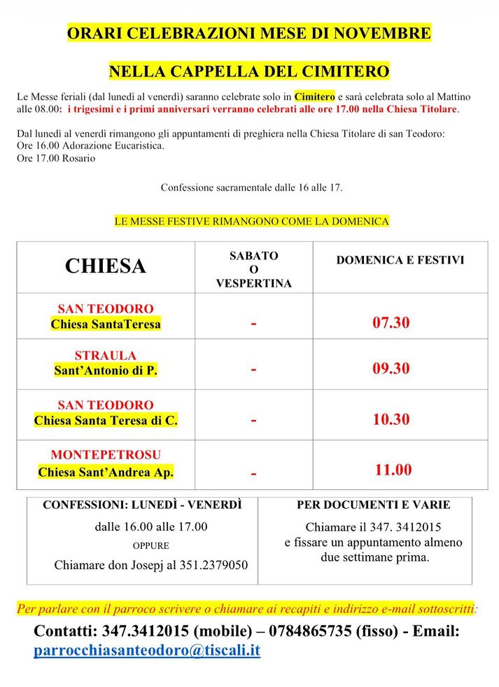 La Parrocchia San Teodoro è collegata con le frazioni di Straula e Monte Petrosu grazie a due chiesette. dedicate rispettivamente a Sant'Antonio di Padova e Sant'Andrea Apostolo.