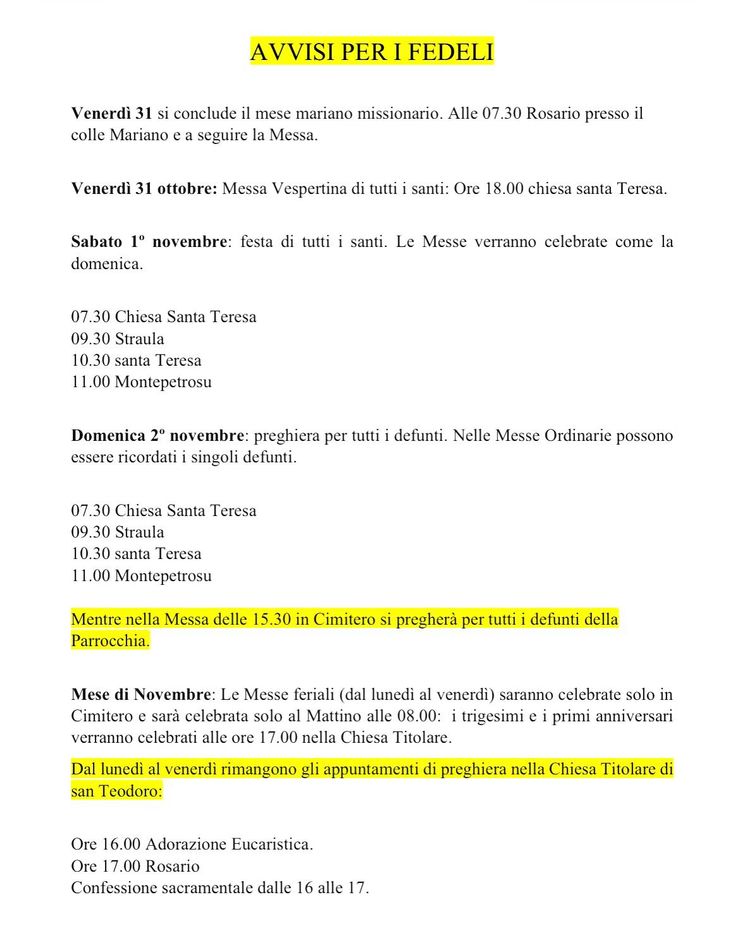 La chiesa cattolica di San Teodoro si occupa delle seguenti attività:
