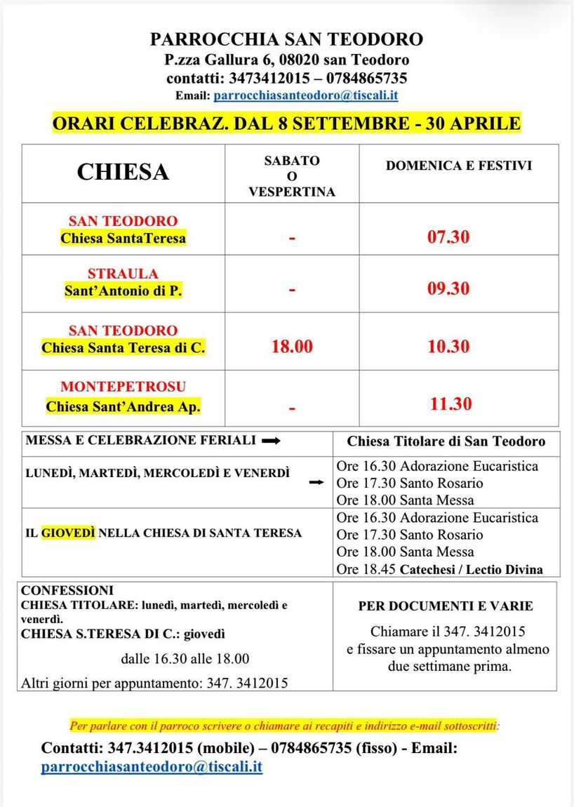 Chiesa cattolica di riferimento per gli abitanti di San Teodoro